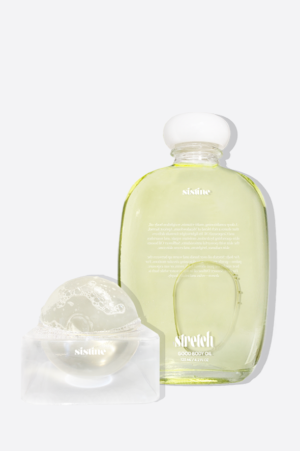 Out with the old—in with Renewal. Elevate your shower and bath rituals with Bath Yolk, and take your body to the next level of healthy, silky, skin with Stretch Good Body Oil. Pair them together for the ultimate Sistine body care experience—or explore them separately to serve your Good needs.